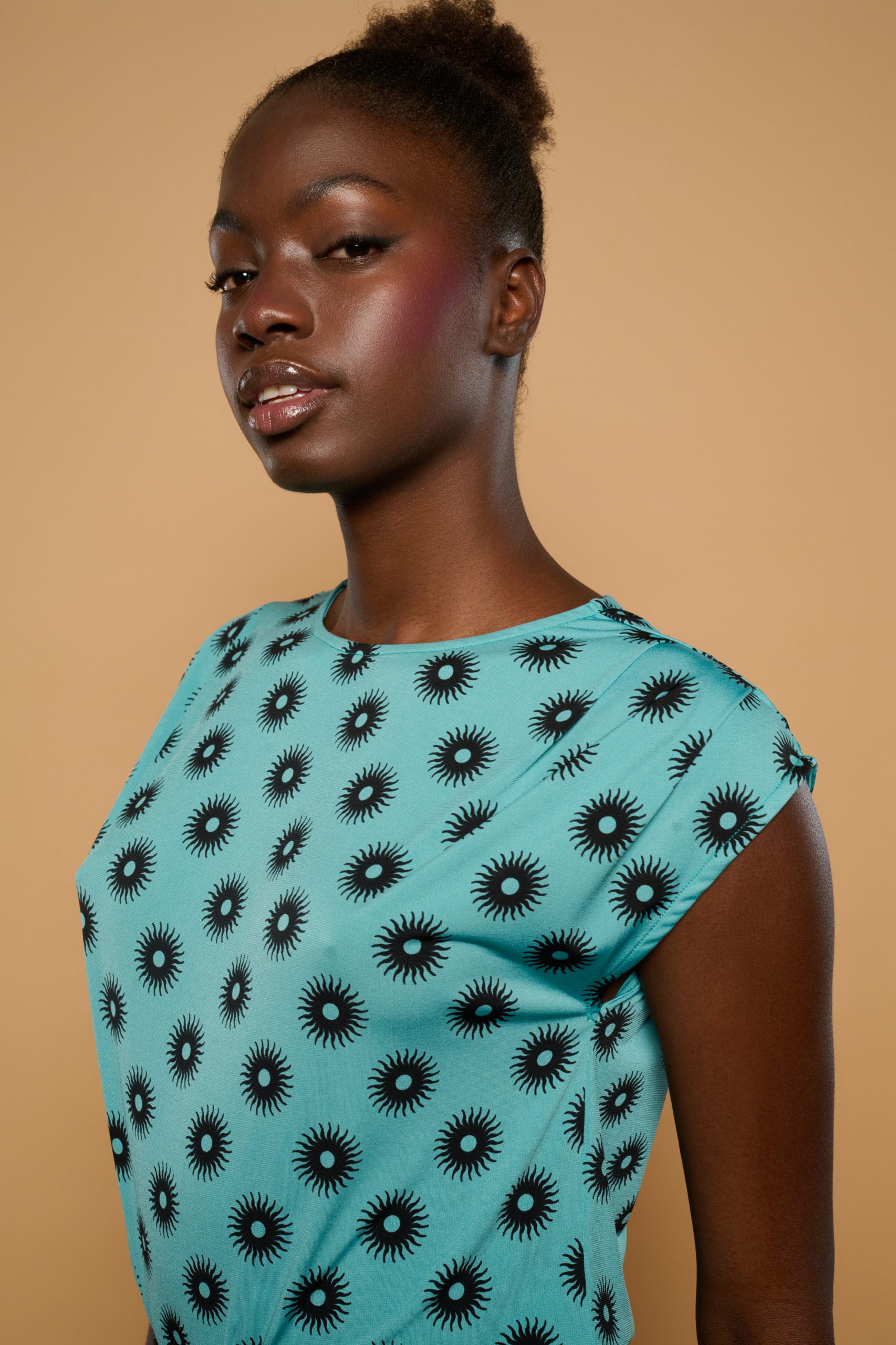 Round-neck short-sleeved T-shirt. Stretch fabric.